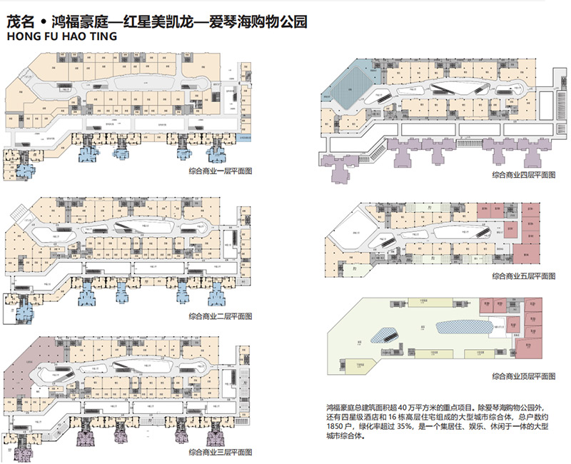 鸿福豪庭总建筑面积超 40 万平方米的重点项目。除爱琴海购物公园外,还有四星级酒店和 16 栋高层住宅组成的大型城市综合体,总户数约 1850 户,绿化率超过 35%,是一个集居住、娱乐、休闲于一体的大型城市综合体。